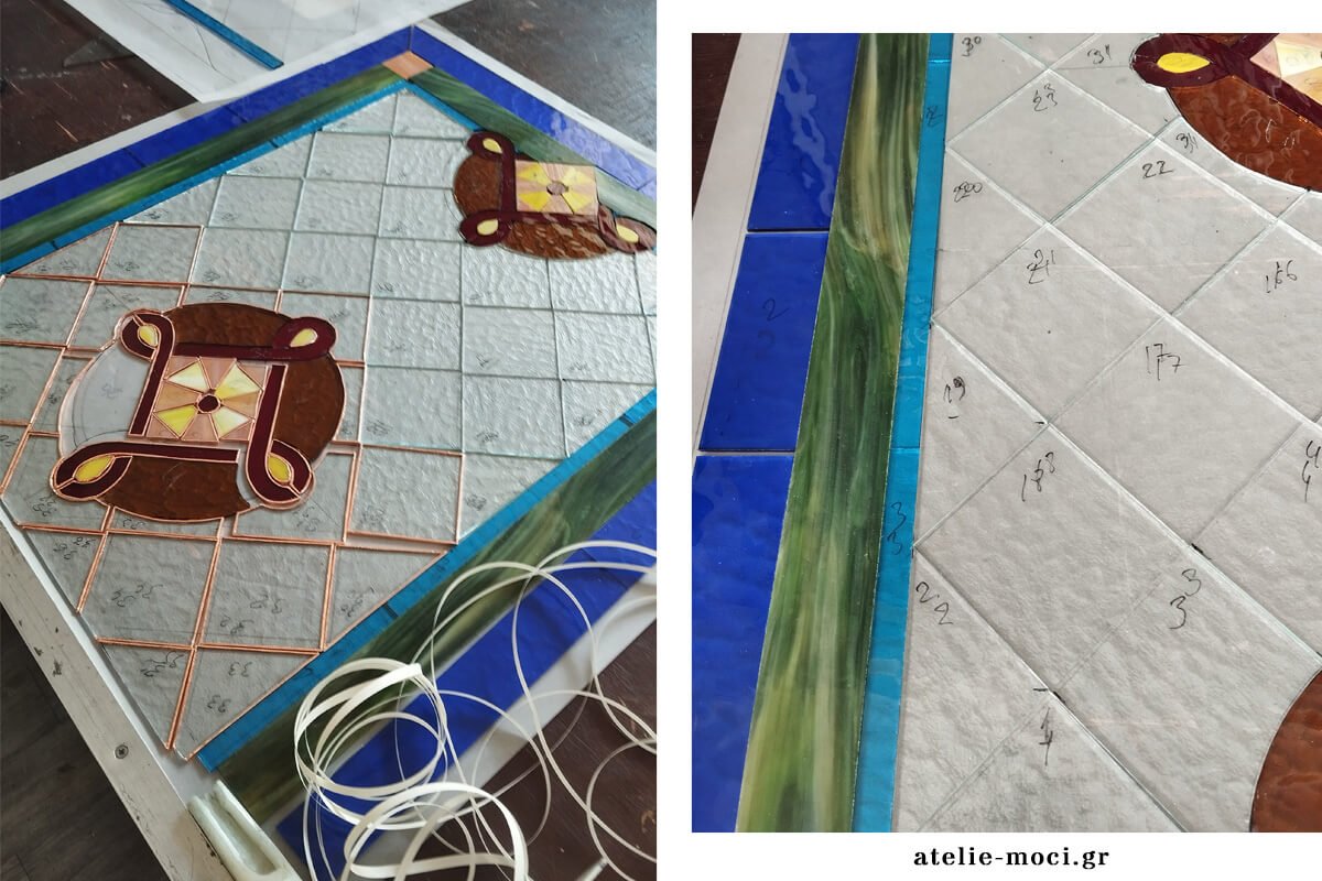 Μοναδικότητα: Κάθε κομμάτι γυαλιού (Καθεδράλ ή Οπαλίνα) τροχίζεται ξεχωριστά, “ντύνεται” με φύλλο χαλκού και συγκολλάται με υψηλής καθαρότητας κασσίτερο. Στιβαρότητα: Το αποτέλεσμα είναι ένα “νεύρο” μετάλλου που διατρέχει όλο το έργο. Αυτό το μεταλλικό πλέγμα κάνει το βιτρό εξαιρετικά ανθεκτικό στις πιέσεις και τις δονήσεις, κάτι απαραίτητο για τις μεγάλες επιφάνειες ενός Μητροπολιτικού Ναού.
