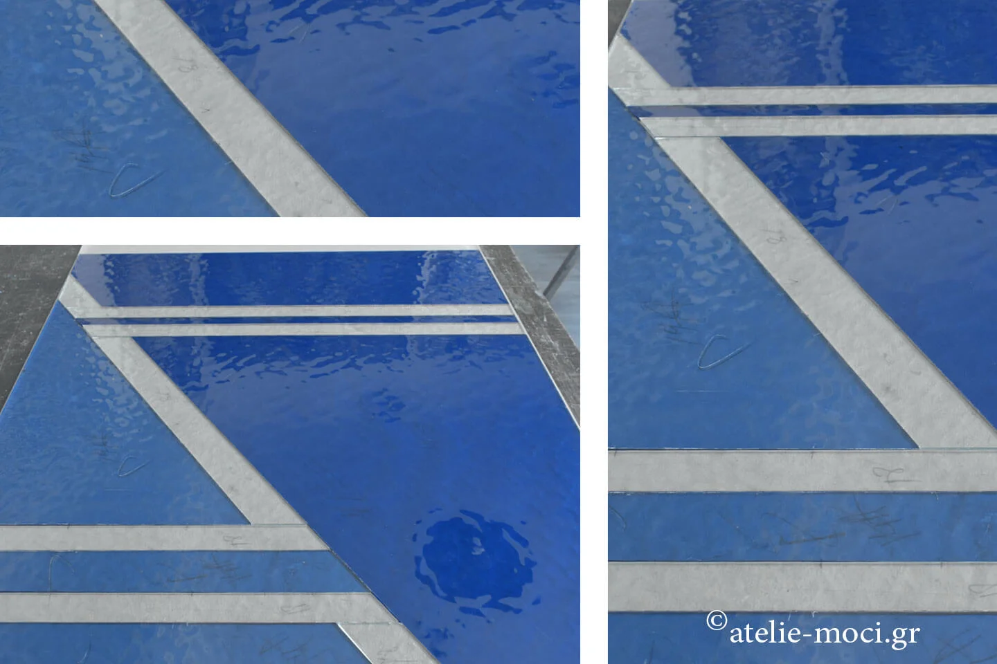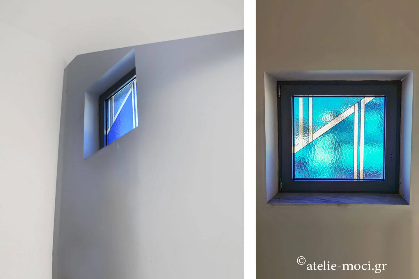 Στο Ατελιέ Μότση όταν δημιουργούμε minimal και post-minimal βιτρώ με μοντέρνο και αφαιρετικό ύφος δίνουμε μεγάλη σημασία πρώτα στο concept και μετά στην διαδικασία του σχεδίου, πρώτα οριοθετούμε την κλίμακα των κομματιών μετά το σχήμα και ύστερα ρυθμίζουμε για να δημιουργηθεί η οπτική μάζα που δίνει τις γλυπτικές αξίες του μινιμαλισμού, μέσα από την χρωματική και γεωμετρική αναλογία του σχεδίου.