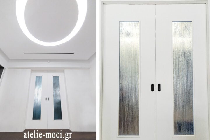 ΓΥΑΛΙΝΟΣ ΚΑΤΑΡΡΑΚΤΗΣ: ΜΙΑ ΚΑΙΝΟΤΟΜΑ ΚΑΛΛΙΤΕΧΝΙΑ – Ένα Γλυπτικό γυαλί πολυτελείας με τρισδιάστατο οπτικό εφέ αποτελούμενο από λεπτές, διαφανείς λωρίδες, διαστάσεων 5χ10 χιλιοστά η καθεμία, λεπτεπίλεπτη χειροτεχνία ενώνονται μεταξύ τους οι λωρίδες και στη συνέχεια εφαρμόζουμε δική μας ειδική τεχνοτροπία που προσδίδει στην επιφάνεια την οπτική ψευδαίσθηση της ροής του νερού. Είναι ιδιαίτερα εντυπωσιακό παρότι η όψη παραπέμπει σε ρευστότητα, η υφή της είναι απόλυτα λεία, δημιουργώντας ένα συμπαγές και ασφαλές σώμα που βρίσκει πολλές εφαρμογές στο χώρο του interior deco, στη συγκεκριμένη πρόταση τοποθετήθηκε στο κενό εσωτερικής συρόμενης πόρτας.